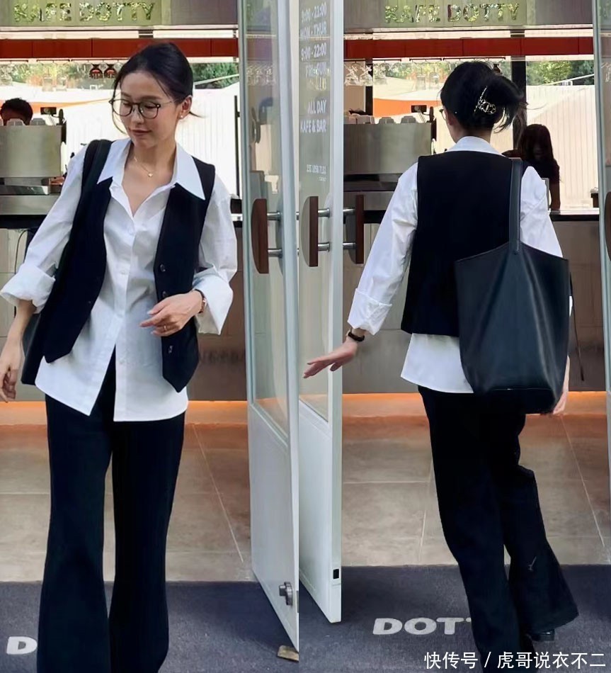 中国体育彩票销售柜皇冠网址大全举例图中这身白衬衫配阔腿裤的穿搭中,就在上身外搭了一件玄色马甲,不仅与衬衫塑造出了显着的档次成果,也与下装呼应出了格外帅气的举座感。