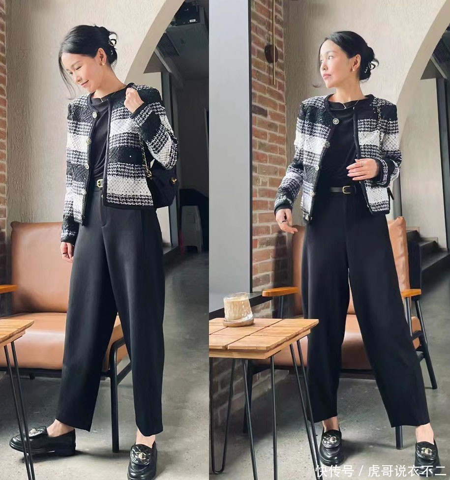 二、黑、白色外衣更显面料质感秋冬的外衣大多追求面料质感澳门金沙在线,因此中年女性也会更激情外衣的实穿性,而比起花里胡梢的配色,天然已经基础色更能体现出其档次感。